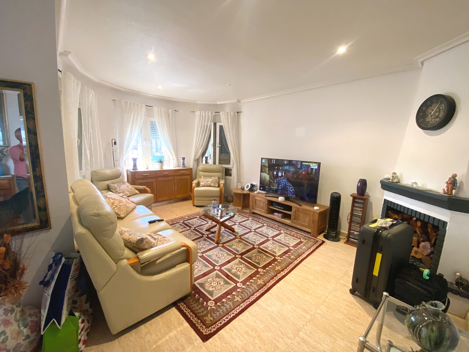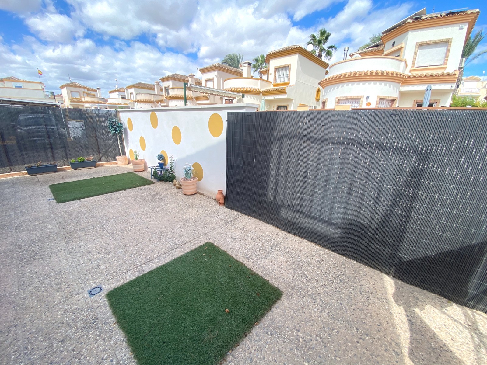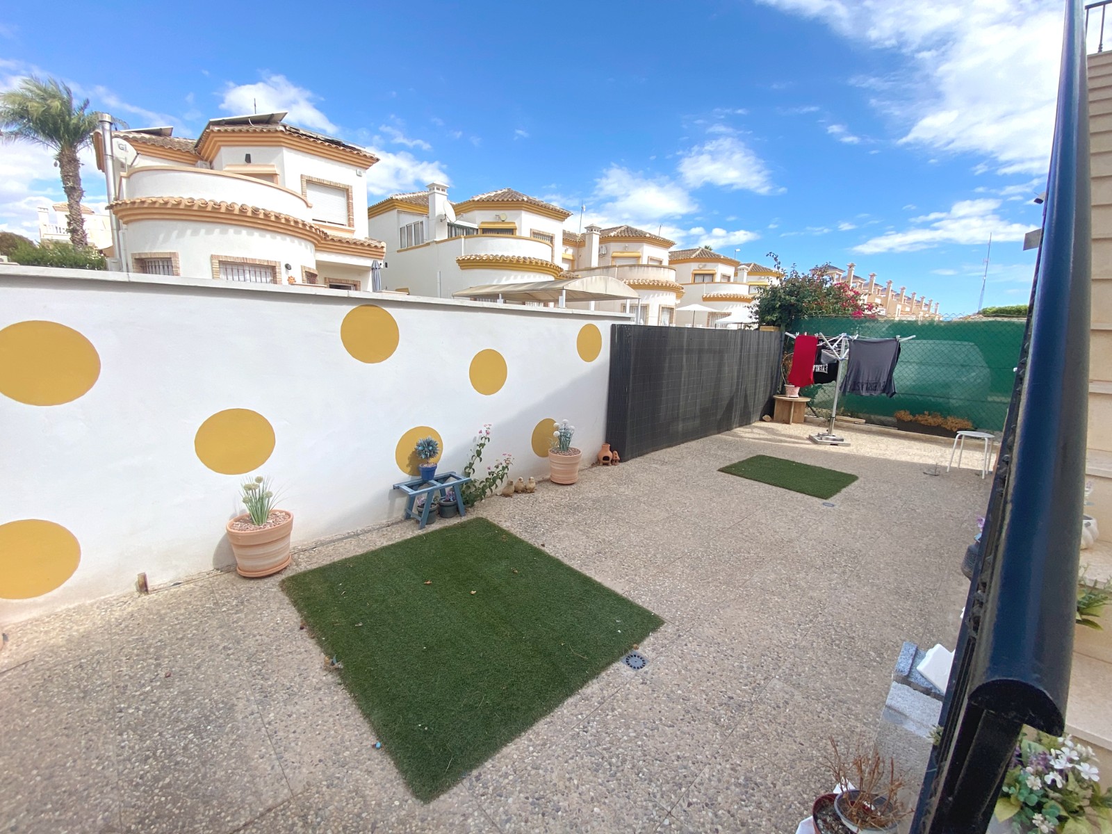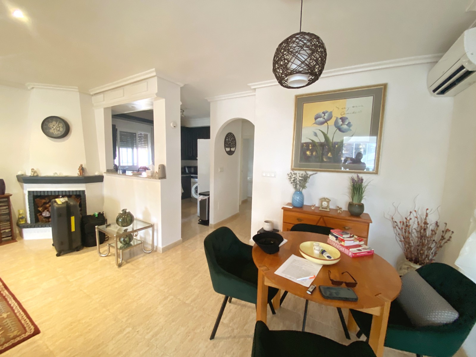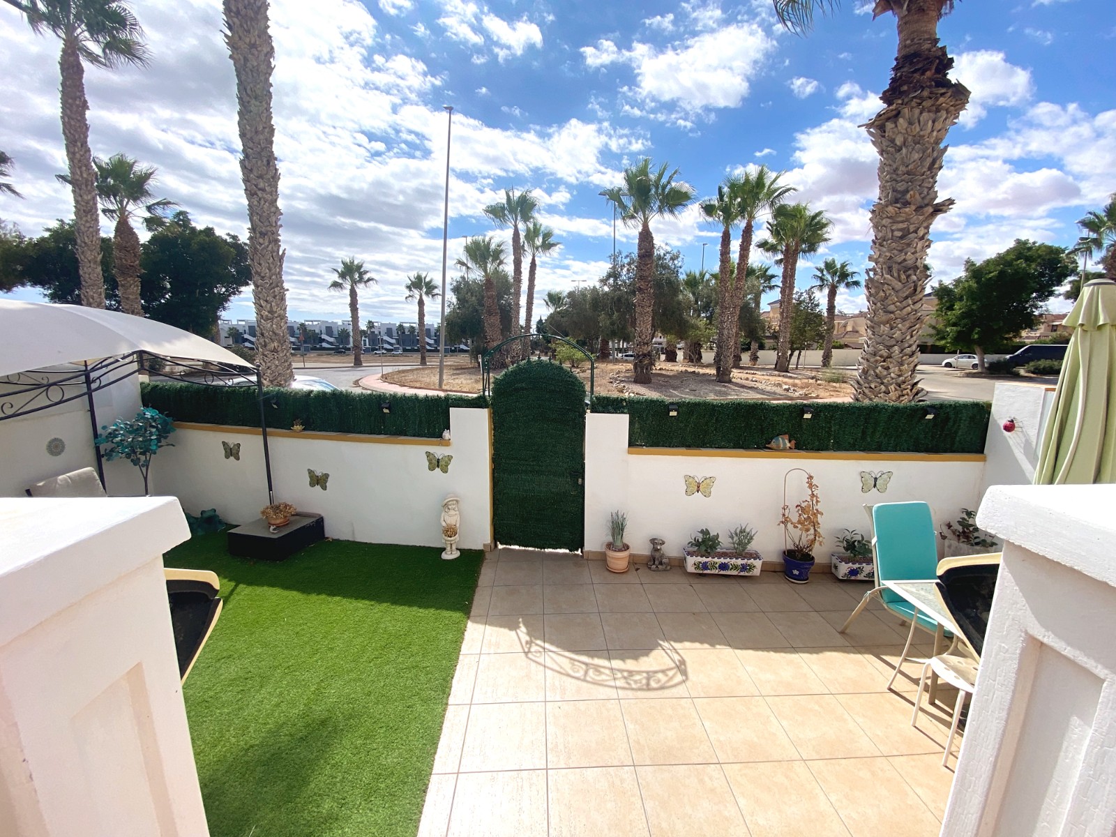 This superb detached villa is presented for sale in excellent condition and has been maintained to a very high standard. The property offers a bright spacious two bedroom, one bathroom accommodation with a large lounge / diner and a feature fire place. A good size fully equipped kitchen complete with open breakfast bar area. An archway from the dining area leads to a passageway to two double bedrooms and a family size bathroom. The property has a large glazed, private front terrace feature Currently used as a beautiful sun lounge taking full advantage of its south facing aspect. To the front of the property is a good size garden area that has great potential and/or private splash pool. To the rear of the property is an of road drive and gates storage areas and a staircase that leads up to a very large roof terrace. From this terrace there are excellent views of the local area and over the large green area to the front of the property. There is a very large storage area on the roof space that also has great potential. Viewing is highly recommended to really appreciate what this property has on offer.