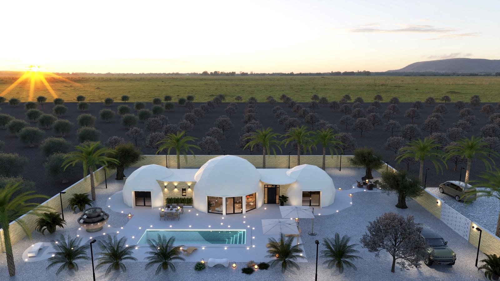 We present this impressive "geodesic" country house situated just a short drive from the town of Pinoso (Alicante) , just 45 minutes from Alicante city , coast and airport. Enjoy the tranquility of a unique natural environment. The innovative geodesic design of this property not only gives it the modern appearance, but it maximizes energy efficiency and comfort. An ideal opportunity for anyone seeking a distinctive and naturally bright home perfectly integrated with its surroundings.The main features of this "off plan" property include:170m2 property with 3 spacious bedrooms, including a master suite with ensuite bathroom and dressing room.2 full bathrooms (including en suite), fully equipped with modern showers. Open-plan living-dining-kitchen area, spacious and bright, ideal for family enjoyment.Separate laundry room.Panoramic windows with direct access to the outside, double glazing, sun protection and motorized blinds.Fitted kitchen furnished with high-quality materials (not including electrical items).Pre-installation for air conditioning throughout the house.1.20mtr wide pathway around the perimeter of the property Mains water and electic (plus irrigation water and solar options)Private 10 x 3m2 swimming pool with 2m of surrounding terrace paving. 13000m2 plot however 3,000 m² is fenced with motorized gate.Land preparation with compacted gravel.Construction project and energy efficiency certificate included.OPTIONAL EXTRA : The property can be built with a 170m2 basement with vehicle access or to provide additional living areas. Please contact us for more information and photos. CONSTRUCTION AND DELIVERY TO THE NEW OWNER DURING 2026. Builld time approx 10-12months.A modern, efficient, and unique home. Perfect for those seeking a sustainable lifestyle, with innovative design and maximum comfort. Live surrounded by nature without sacrificing the quality and features of a contemporary home.